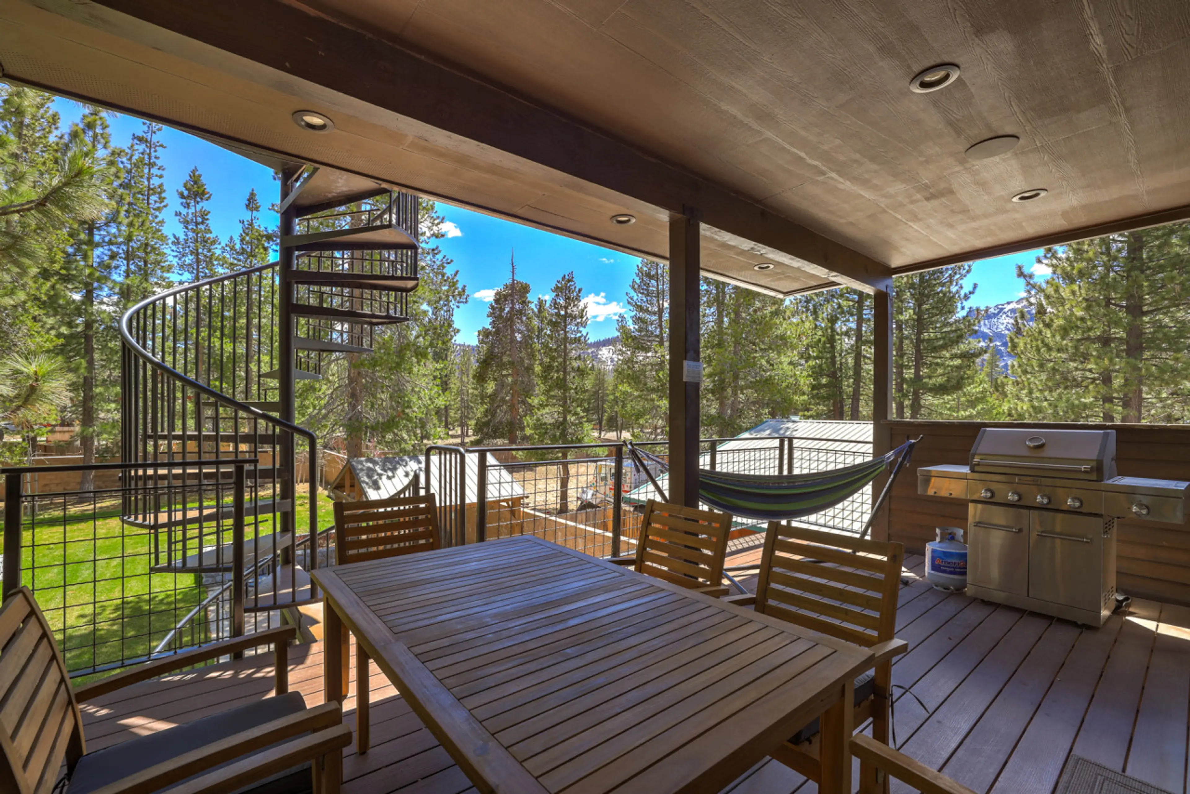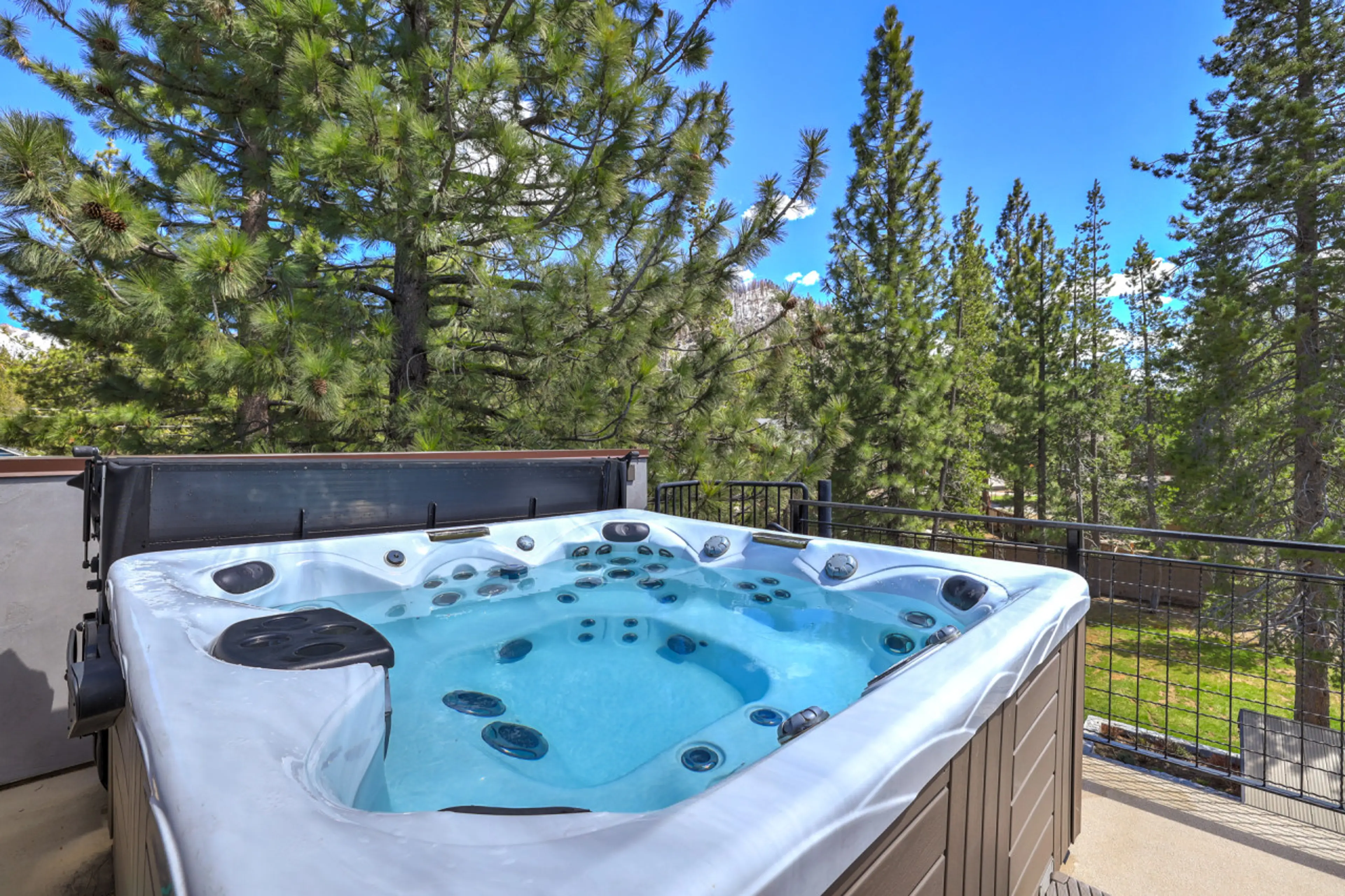 Our home is a stunning, large, luxury Tahoe home with rustic touches. Boasting 4 bedrooms, 2.5 bathrooms, 3 car garage, roof top hot tub, hammock & new patio table. The kitchen is fully stocked with everything you'd need to whip up a feast. The living room has a huge comfortable couch and large Smar...