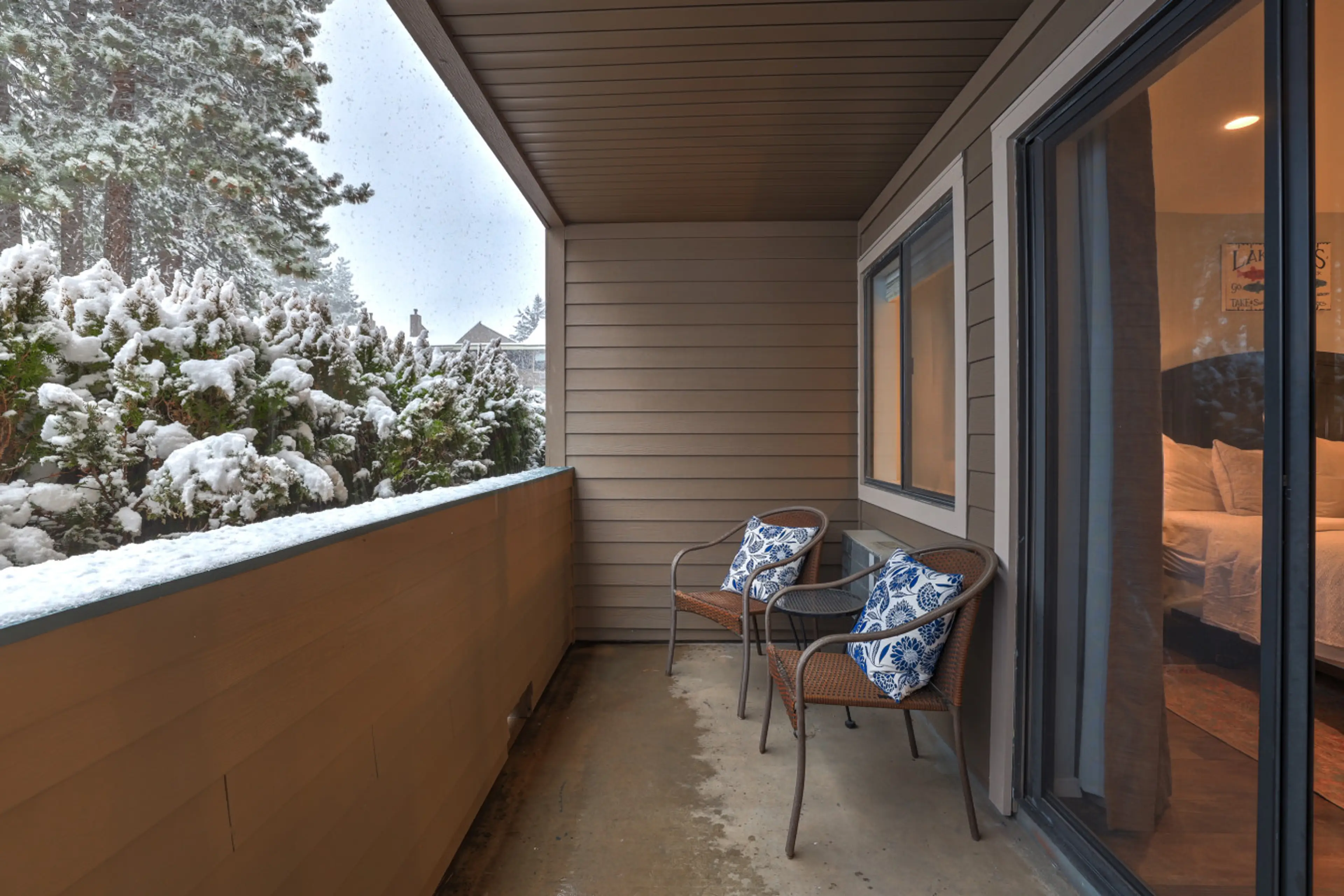 Great location- VERY close to the lake (5 min walk) and plenty of eateries! Downtown shopping/vibes were only 5 minutes away. Laundry is right next to room, as is jacuzzi/pool.Clean place, bed was comfy and we loved small balcony. HVAC was really nice in the room, and powerful. Jacuzzi was great! Parking was simple. Will note- we do not recommend Bear Mountain Bar and grill for eating- it was super expensive, bland and gross. Did get a GREAT burger & fries at Burger Daddies (walking distance- across the street- and half the price).Also- Safeway on NV side was WAY cheaper than Raley’s on CA side.PHENOMENAL vacay- cannot WAIT to come back and will be praying this rental is available.